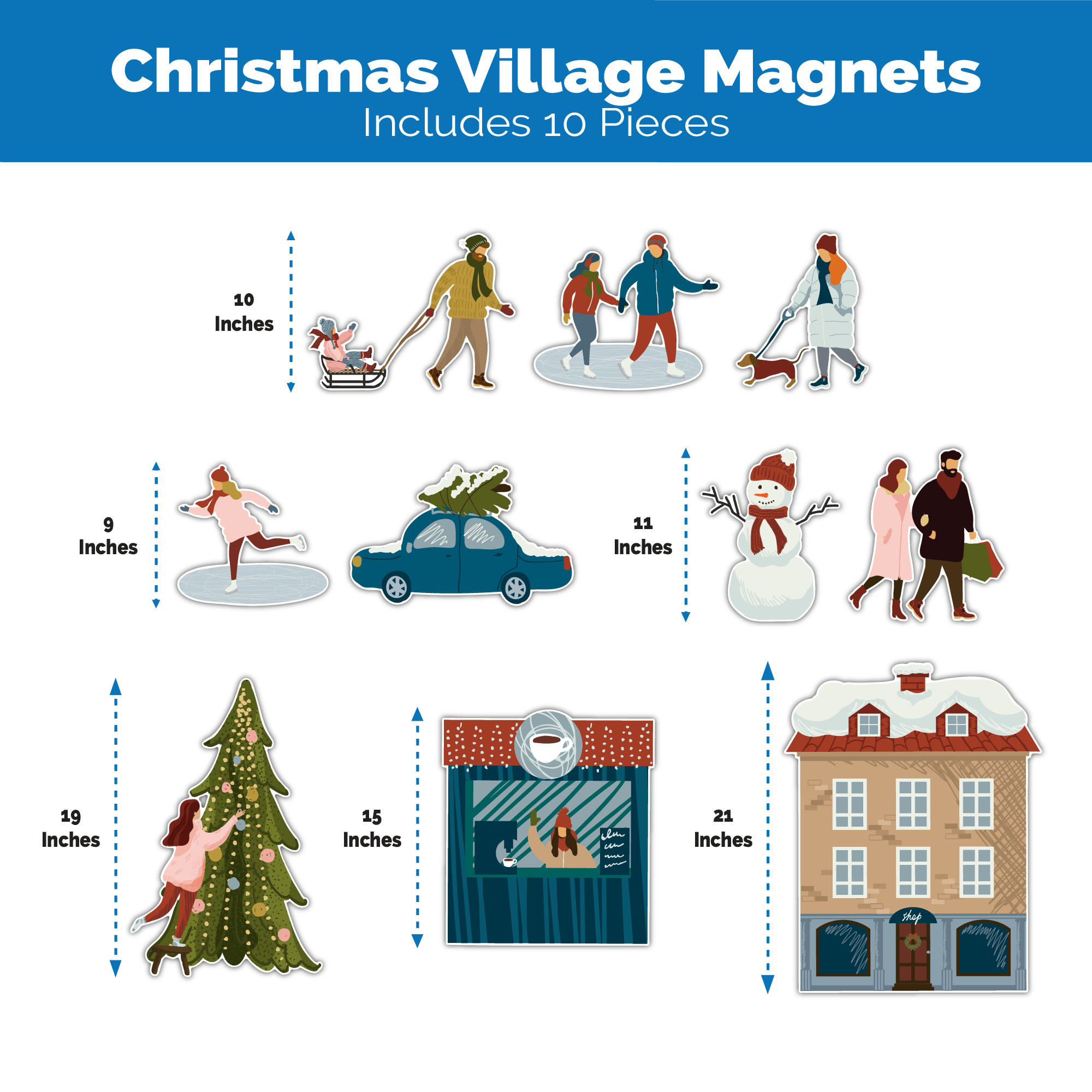 Christmas Village Magnets Christmas Decorations | 10 Pieces