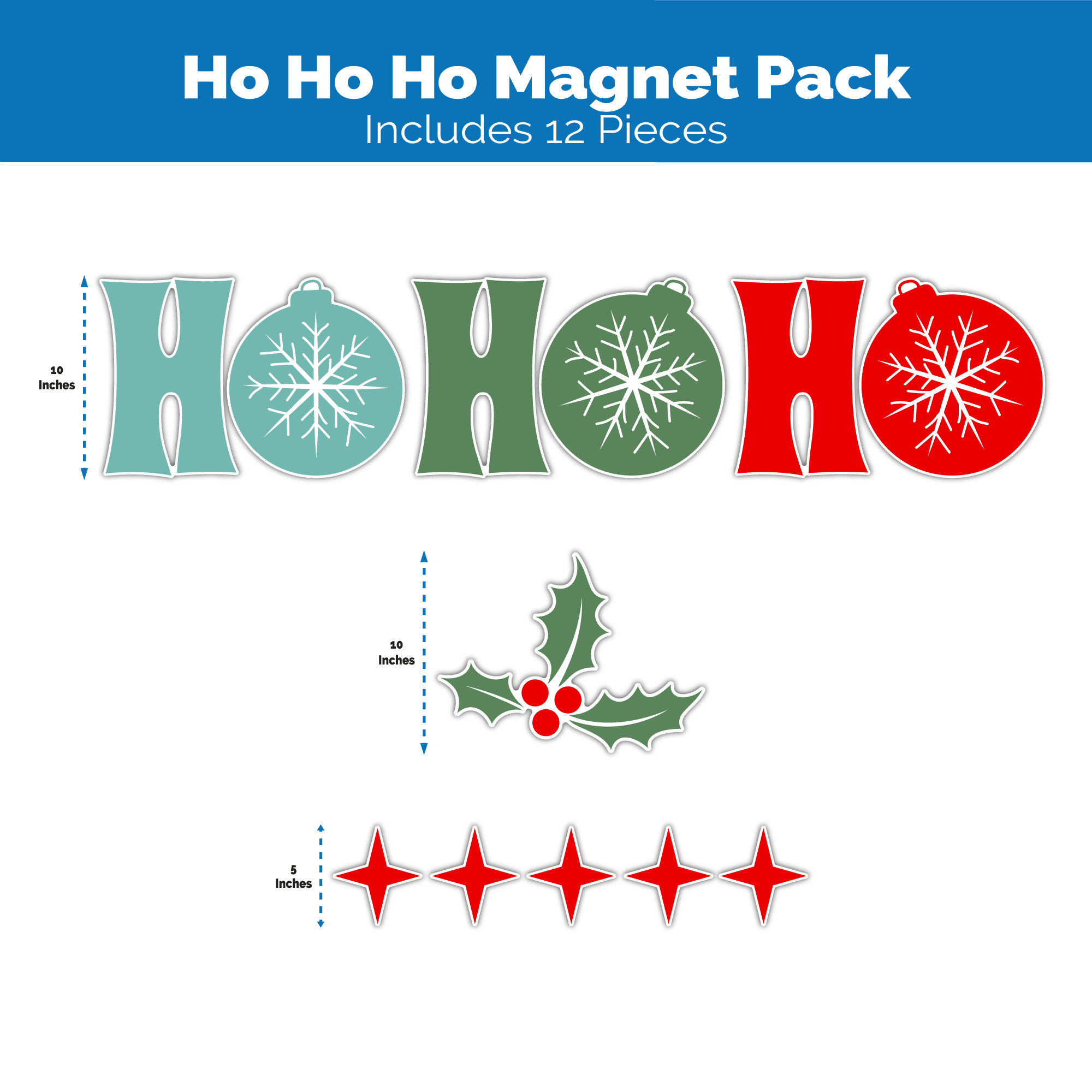Ho Ho Ho Magnets | Christmas Decorations | 12 Pieces