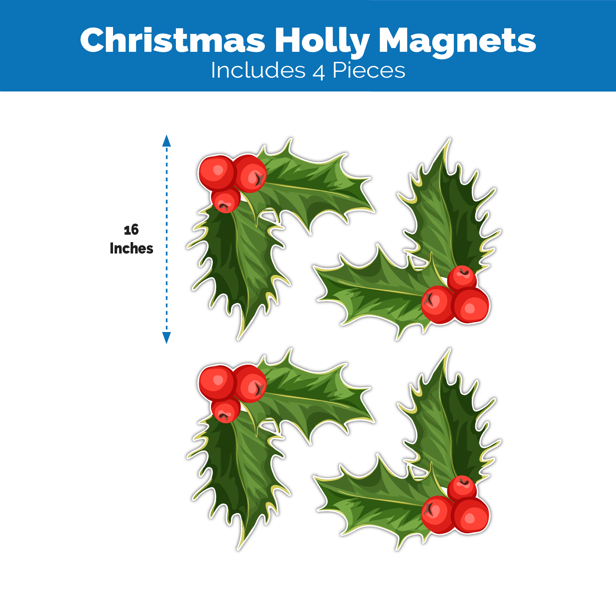 Holly Magnets | Christmas Decorations | 4 Pieces