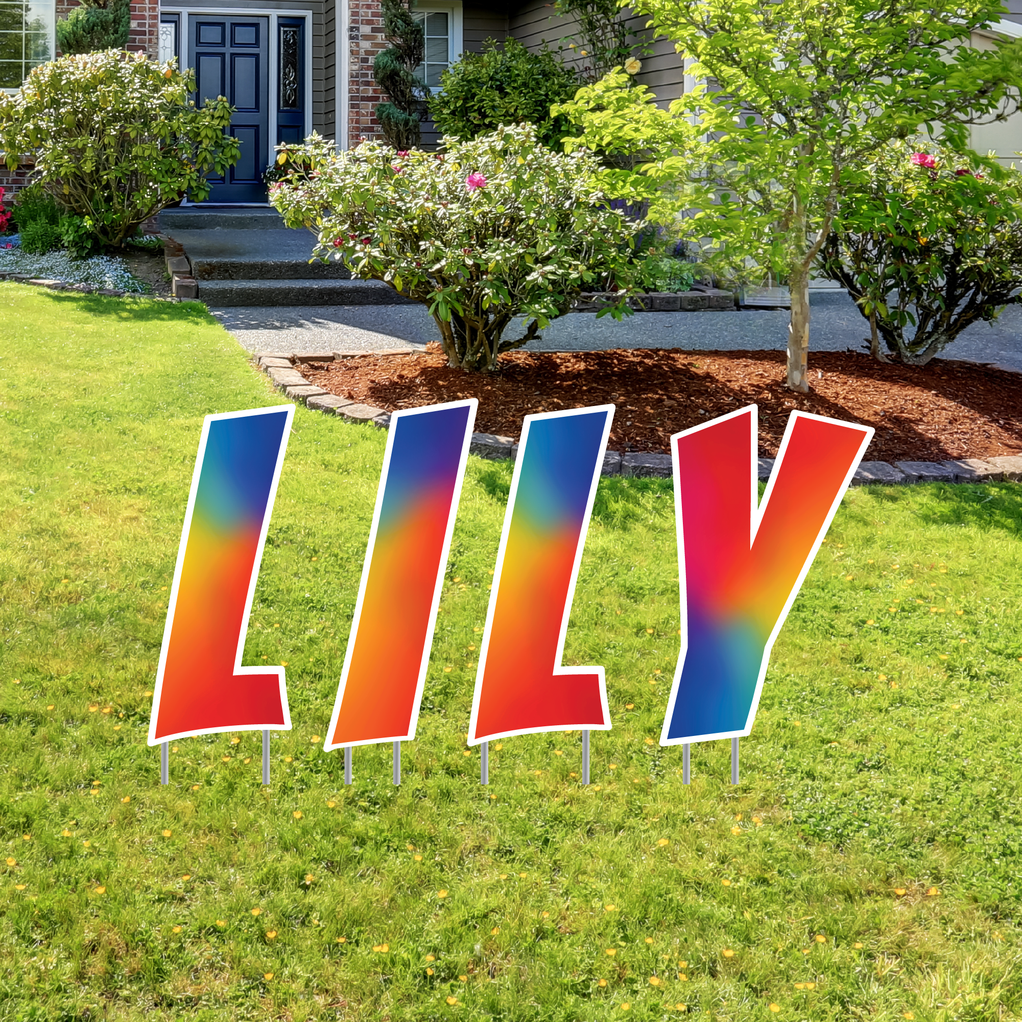 17" Customizable Rainbow Lawn Letters with Stakes | Super Font