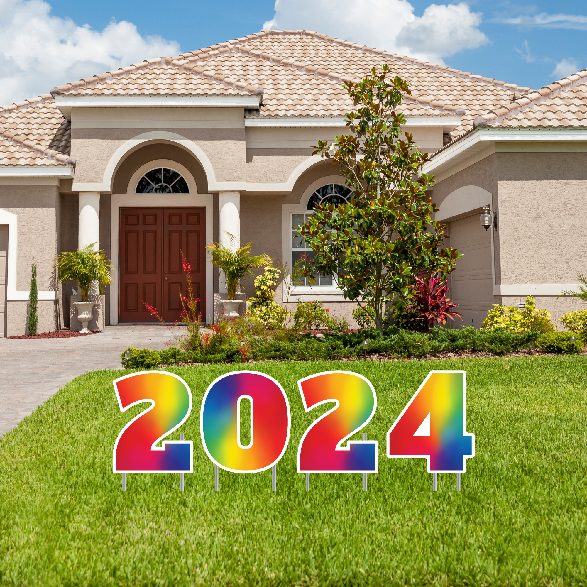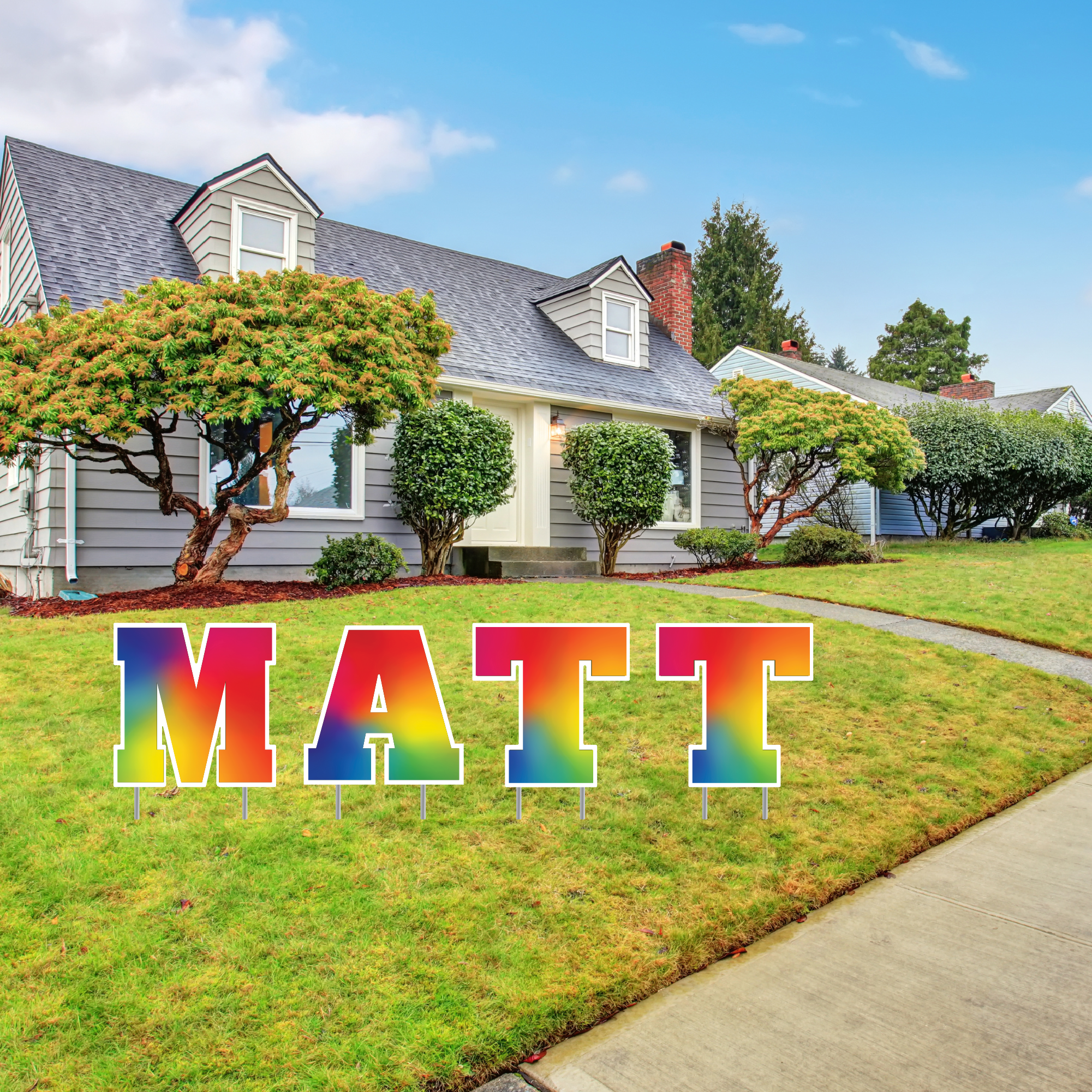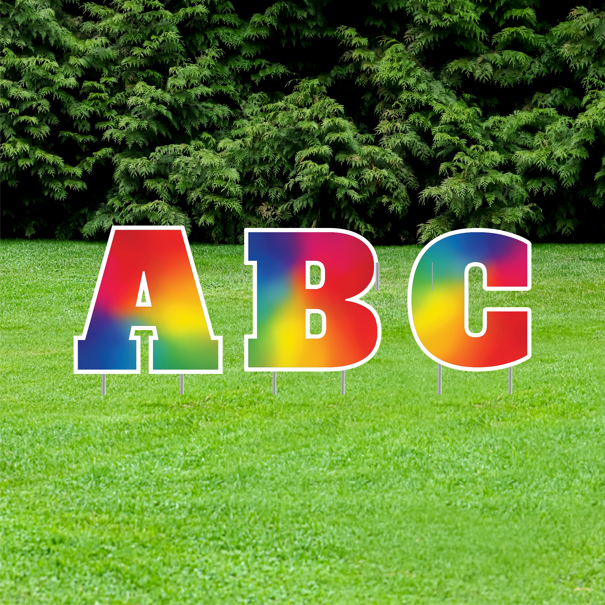 23.5" Tall Customizable Rainbow Lawn Letters with Stakes | Serif Bold Font
