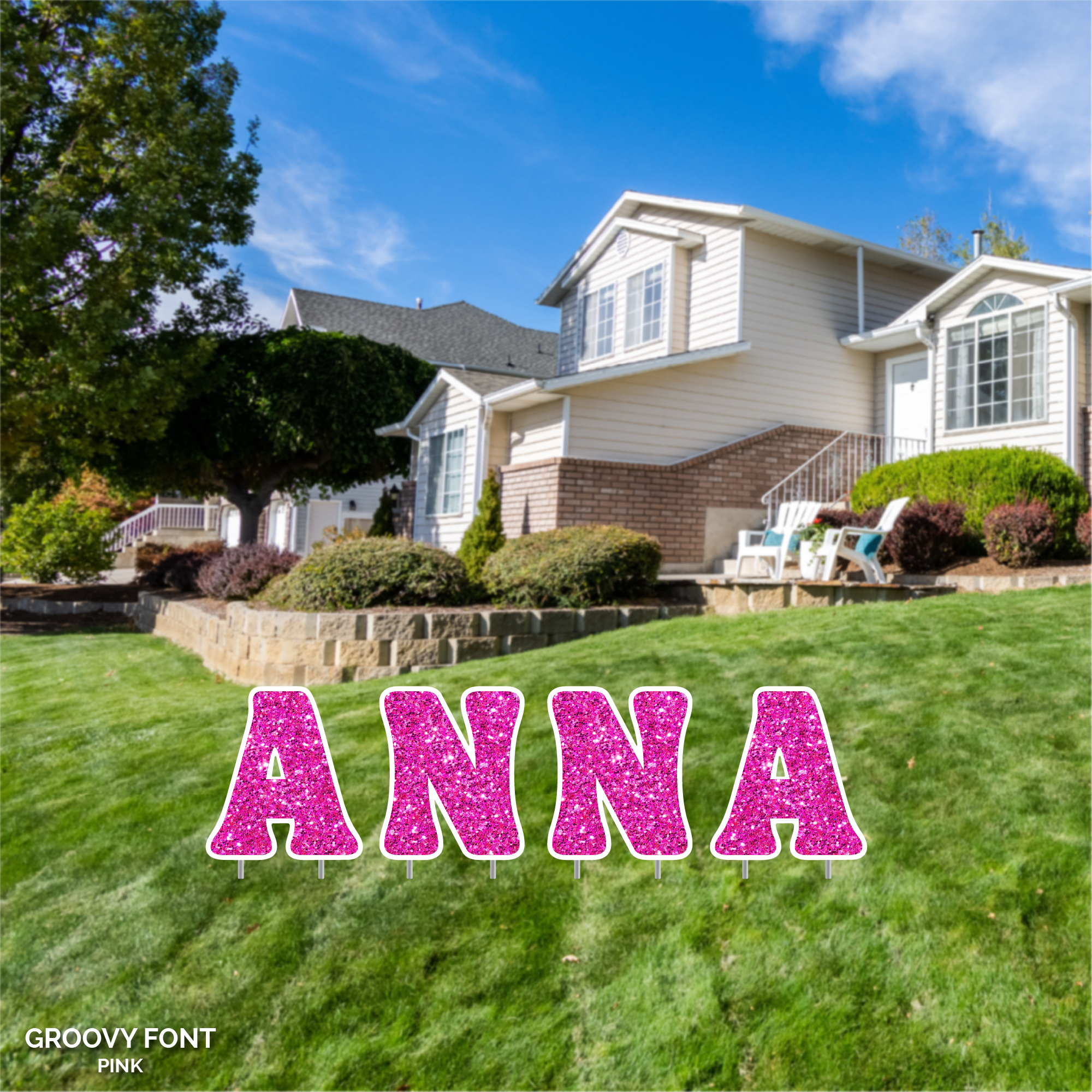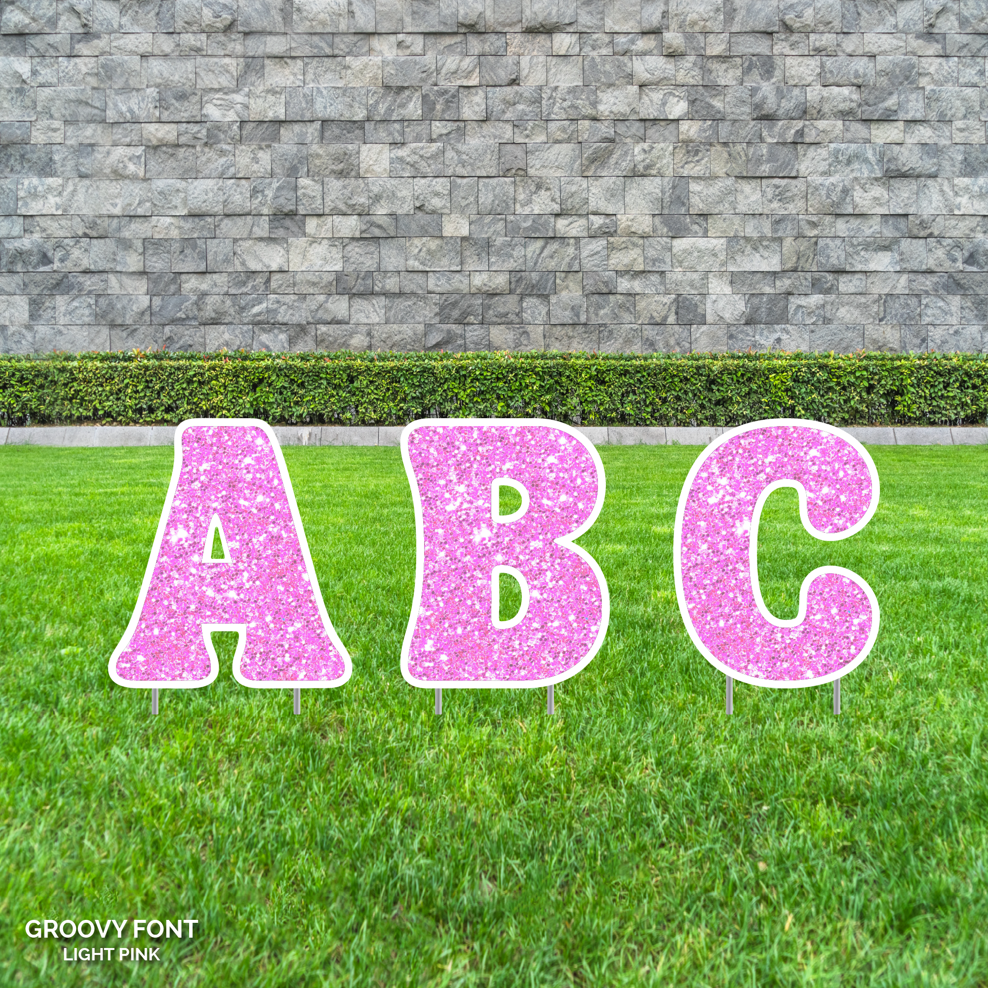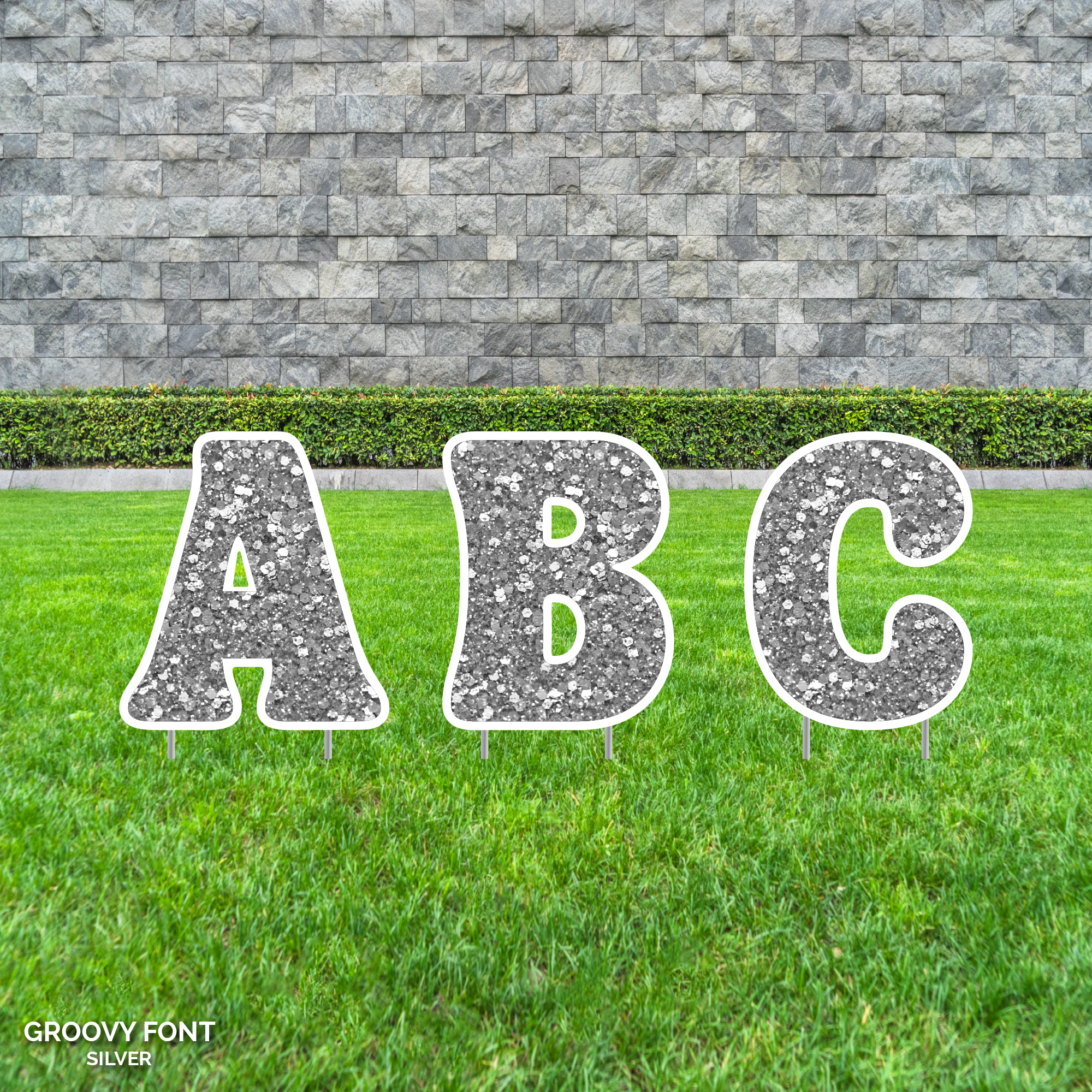 23.5" Tall Customizable Sparkle Lawn Letters with Stakes | Groovy Font