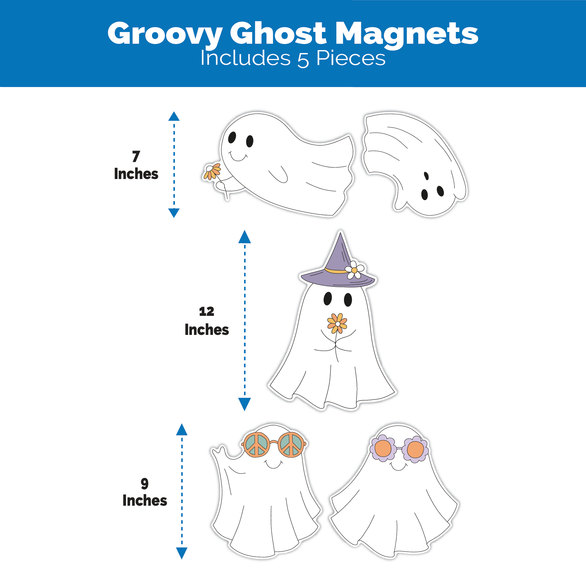 5 Piece Groovy Ghost Halloween Magnets