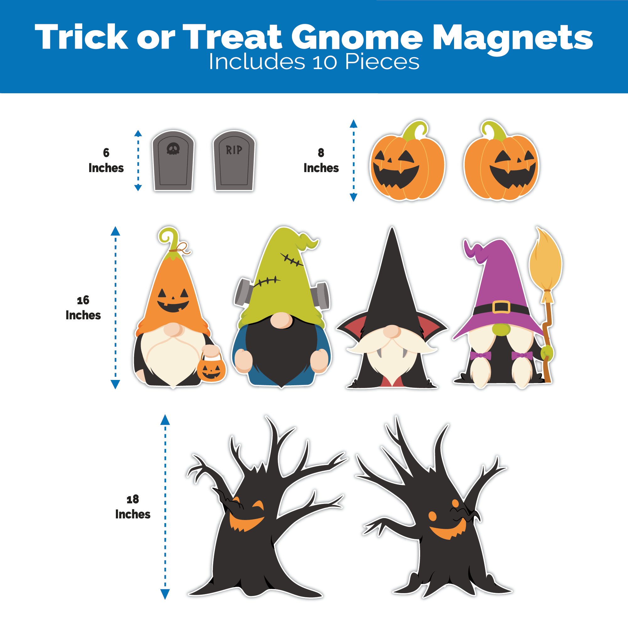 Trick or Treat Gnome Magnets | Halloween Decorations | 10 Pieces